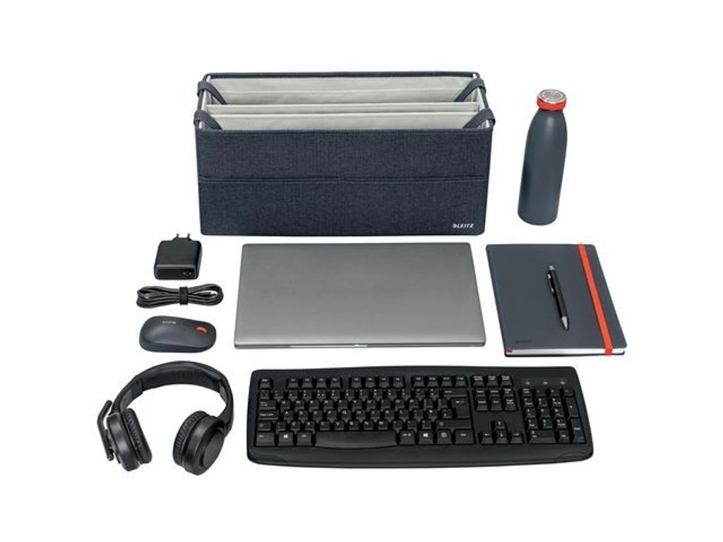 Med Leitz väska Office-In-A-Bag kan bära med dig allt du behöver för dagen - jobba hemma sakerna, alla rättade prov och böcker eller föreningspärmen och vattenflaskan. Helt hopfällbar och klarar upp till 8kg! Gör dig hemmastadd vart än din dag tar dig med Fabric Storage-serien från Leitz. Håll ordning på kontoret, hemma och överallt däremellan. En förvaringsväska med tillräckligt med utrymme för laptop, tangentbord, mus, laddare, headset, anteckningsbok och en vattenflaska. Minimalistisk design och mattgrå sammetsfinish. Tillverkad av mjukt material förstärkt med återvunnen kartong för styrka och hållbarhet. Totalt 57% återvunnet innehåll. Kan den enkelt vikas ihop när den inte används. Väskan har praktiska bärhandtag och är vikbar för det mobila kontoret. Väskan har tre fack för att hålla ordning på innehållet med en central sektion för förvaring av en bärbar dator. Mjukt material skyddar innehållet. Fabric Storage-serien från Leitz kombinerar komfort och kvalitet för att skapa en positiv och produktiv arbetsmiljö. - Totalt 57% återvunnet innehåll - Lätt och stark förvaringsväska för upp till 8 kg - Kan demonteras helt och är 71% återvinningsbar - Plastfri förpackning - Helt hopfällbar - Perfekt för t.ex. lärare, föreningar, utrustningen för hemmakontoret - Enkel ihopvikning eller montering - 3 fack - 2 handtag - Mjukt tyg material