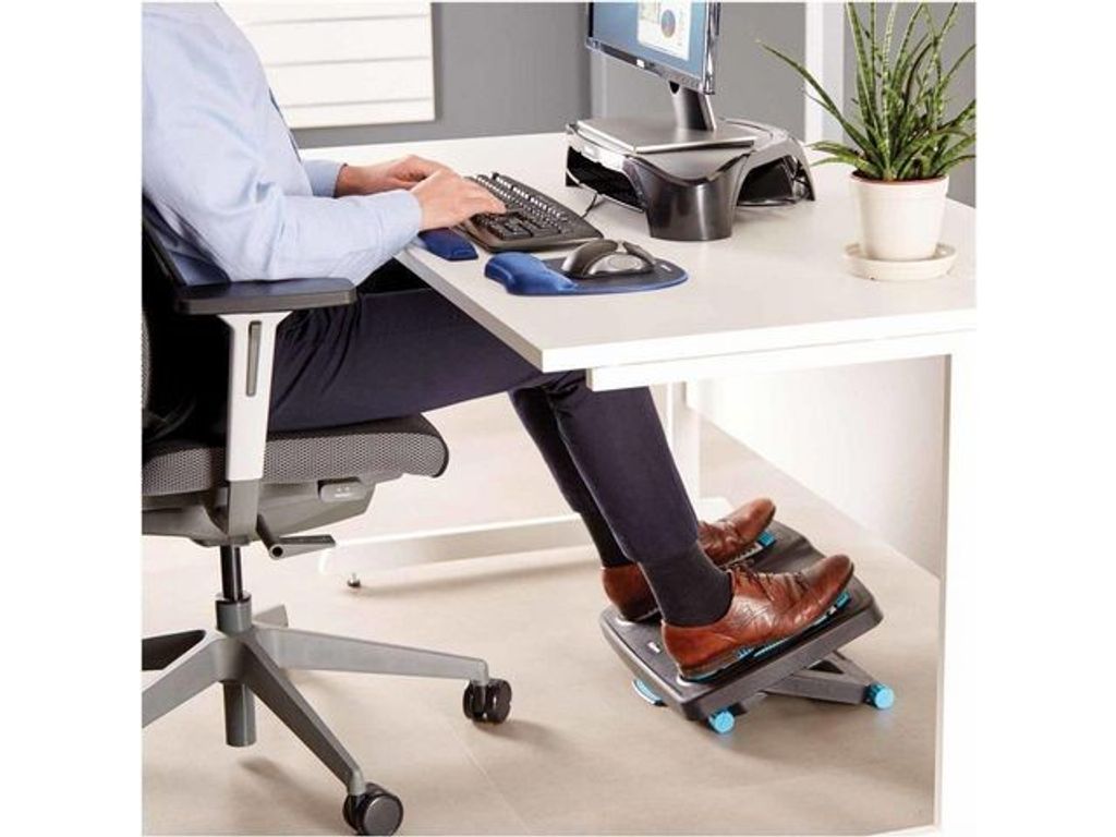 Förbättra hållning och komfort med Fellowes® Energize™-fotstöd Förbättra hållning och komfort med Fellowes® Energize™-fotstöd Fellowes® Energize™-fotstöd är idealiskt när du arbetar många timmar sittande vid skrivbordet och ger stimulans för trötta fötter och lindrar stress. Plattformen utan fast vinkel och de innovativa massagedynorna av gummi uppmuntrar till korrekt placering av fötterna och du drar maximal nytta av den gungande rörelsen som uppstår när du sitter, vilket förbättrar hållningen och blodflödet. Tack vare sin kompakta design är den enkel att förvara när den inte används. Höjden kan justeras till 100 mm, 135 mm eller 165 mm och vinklas upp till 25°. - Idealisk för långa arbetspass vid skrivbordet eller daglig användning - Stimulerar trötta fötter och lindrar stress - Höjden kan justeras till 100 mm, 135 mm eller 165 mm - Fotmassagedynor av gummi främjar en bättre hållning - Kan vinklas i upp till 25° - Plattform utan fast vinkel ger en avslappnande gungande rörelse - Kompakt design för enkel förvaring - Förbättrar cirkulationen och ger avslappning för trötta fötter