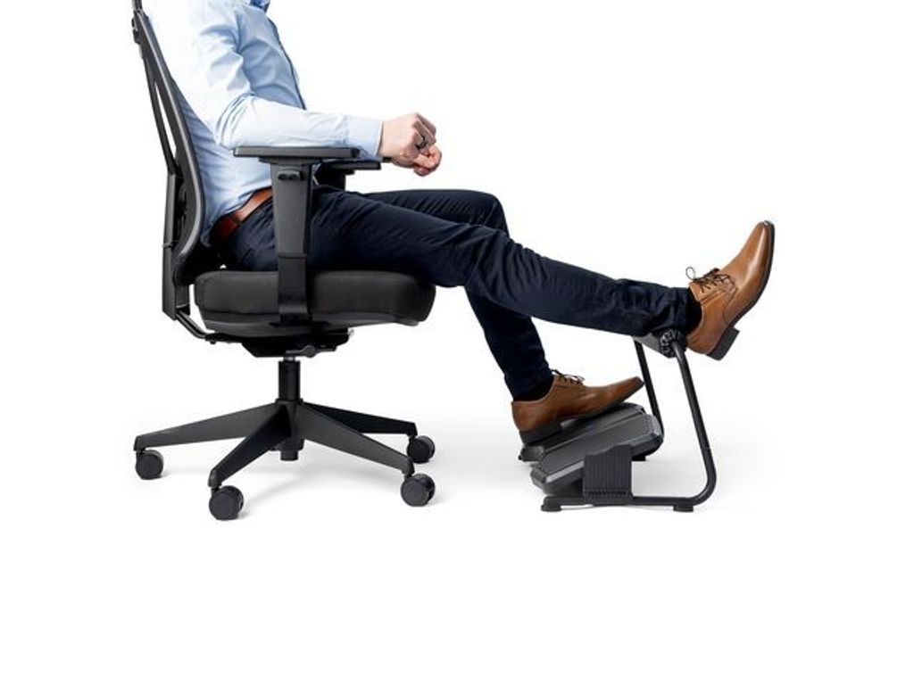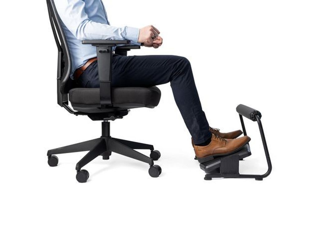 Flex-fotstödet används både vid sittande och stående arbetsställning. Fotstödet är justerbart i tre olika höjder vilket du kan reglera med foten för att enkelt hitta rätt lutning för dig. Den rejäla fotplattan är mycket stabil och halkfri. Det finns också möjlighet att avlasta benen vid stående och sittande arbetsställning genom den mjukt vadderade kudden ovanför plattan. Vid stående arbeta kan du vila benen genom att placera ena foten på kudden eller plattan. Vid sittande läge kan du sträcka ut benen genom att lägga upp benen på det mjuka stödet. En miljösnällare produkt tillverkad i återvinningsbara material som ökar blodcirkulationen genom lutningen av fotplattan som aktiverar de lägra benmusklerna. Produkten är anpassad för att passa skrivbordsstolen och bibehålla närheten till skrivbordet. Konstruktion är utefter EU-direktiv och förebygger också 'kontorsfötter'. - Stomme av stål och en stabil fotplatta av ABS-plast - Bredd: 490 mm - Djup: 370 mm - Höjd: 370 mm - Fotplattan: 430 x 300 mm