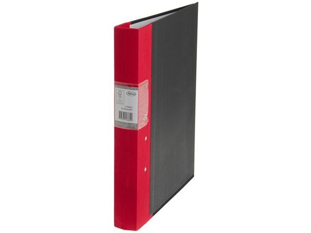 FSC-märkt svart träryggspärm med röd tygklädd rygg MDF-skiva för en mer stabil och stadig pärm. MDF-skivan är tillverkad av minst 30% återvunnet trä. Hög mekanisk kvalitet med ergonomisk trycknapp och livstids funktionsgaranti på mekanismen. Svensk hålning. - FSC-certifierad - Livstids funktionsgaranti på mekanismen - Svensk hålning