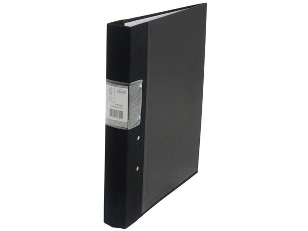 FSC-märkt svart träryggspärm med svart tygklädd rygg MDF-skiva för en mer stabil och stadig pärm. MDF-skivan är tillverkad av minst 30% återvunnet trä. Hög mekanisk kvalitet med ergonomisk trycknapp och - FSC-certifierad - Livstids funktionsgaranti på mekanismen - Svensk hålning