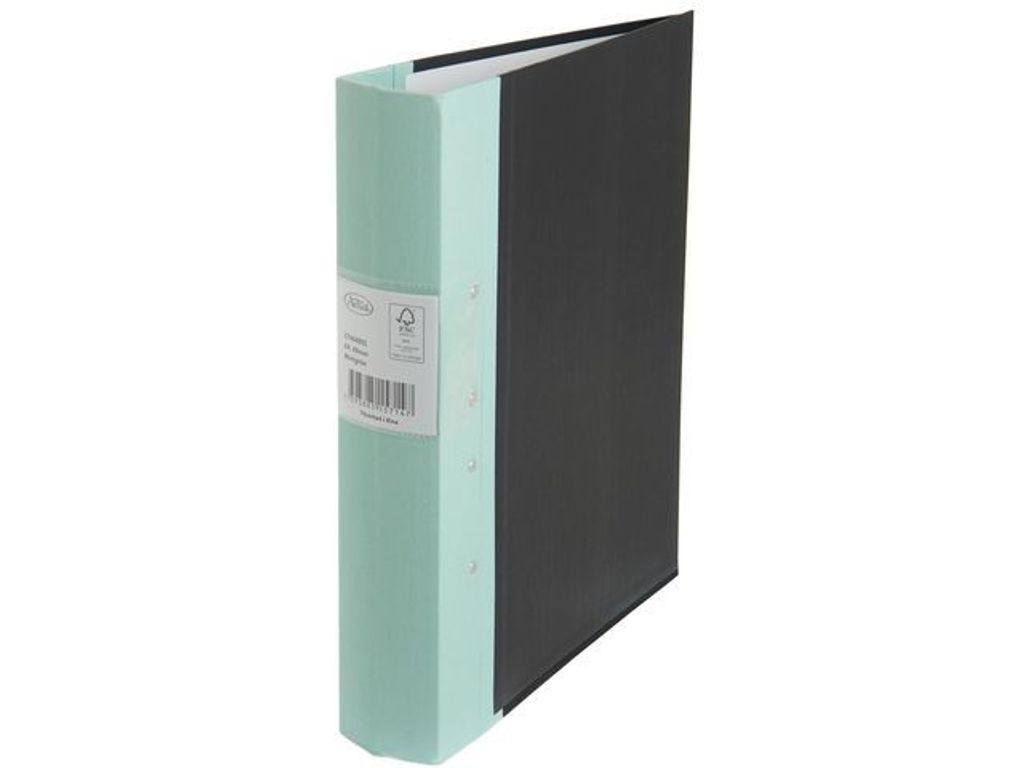FSC-märkt svart träryggspärm med mintgrön tygklädd rygg. MDF-skiva för en mer stabil och stadig pärm. MDF-skivan är tillverkad av minst 30% återvunnet trä. Hög mekanisk kvalitet med ergonomisk trycknapp och livstids funktionsgaranti på mekanismen. Svensk hålning. - FSC-certifierad - Livstids funktionsgaranti på mekanismen - Svensk hålning