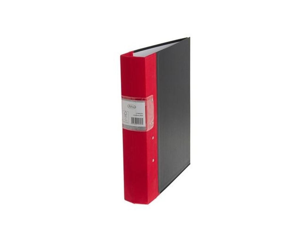 FSC-märkt svart träryggspärm med röd tygklädd rygg. MDF-skiva för en mer stabil och stadig pärm. MDF-skivan är tillverkad av minst 30% återvunnet trä. Hög mekanisk kvalitet med ergonomisk trycknapp och livstids funktionsgaranti på mekanismen. Svensk hålning. - FSC-certifierad - Livstids funktionsgaranti på mekanismen - Svensk hålning