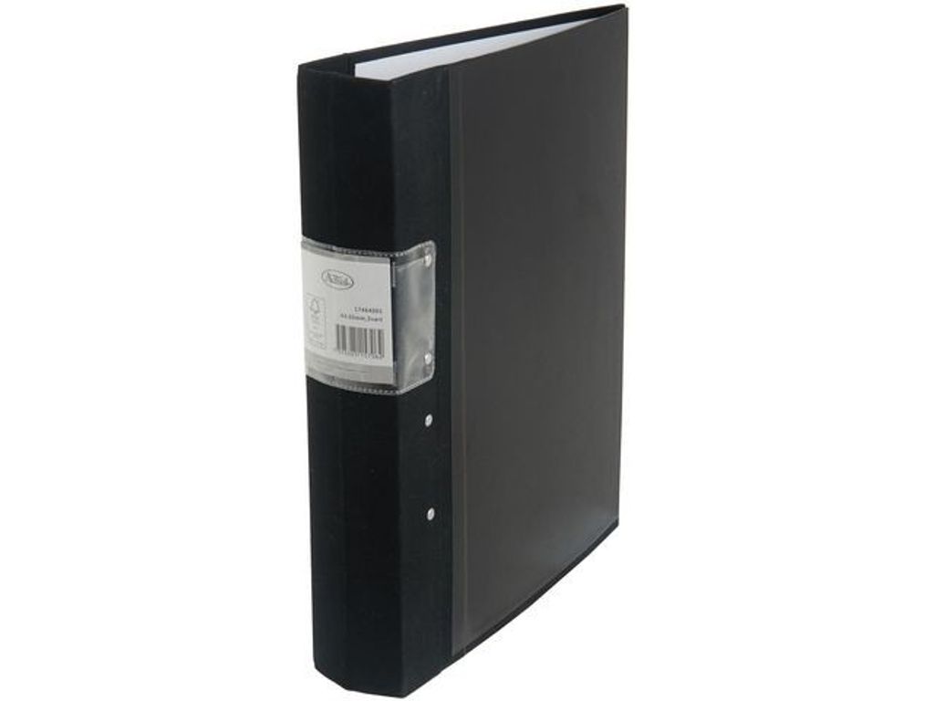 FSC-märkt svart träryggspärm med svart tygklädd rygg. MDF-skiva för en mer stabil och stadig pärm. MDF-skivan är tillverkad av minst 30% återvunnet trä. Hög mekanisk kvalitet med ergonomisk trycknapp och livstids funktionsgaranti på mekanismen. Svensk hålning. - FSC-certifierad - Livstids funktionsgaranti på mekanismen - Svensk hålning