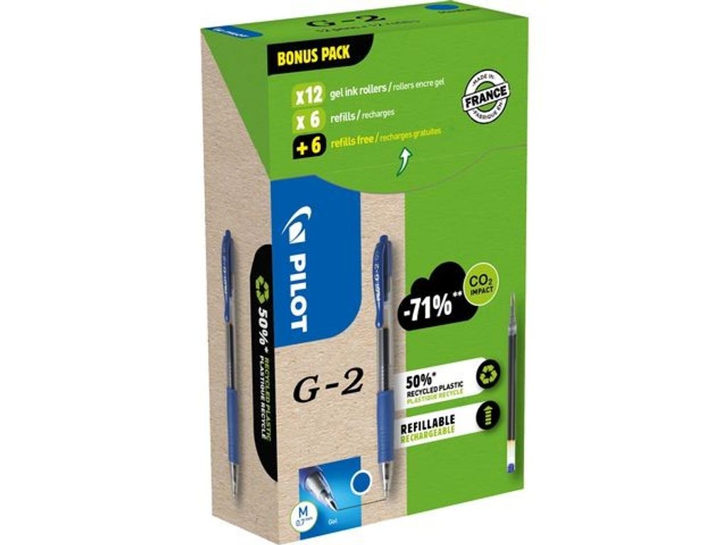 Beskrivning av Gelpenna PILOT G2 Greenp. blå 12+12/fp