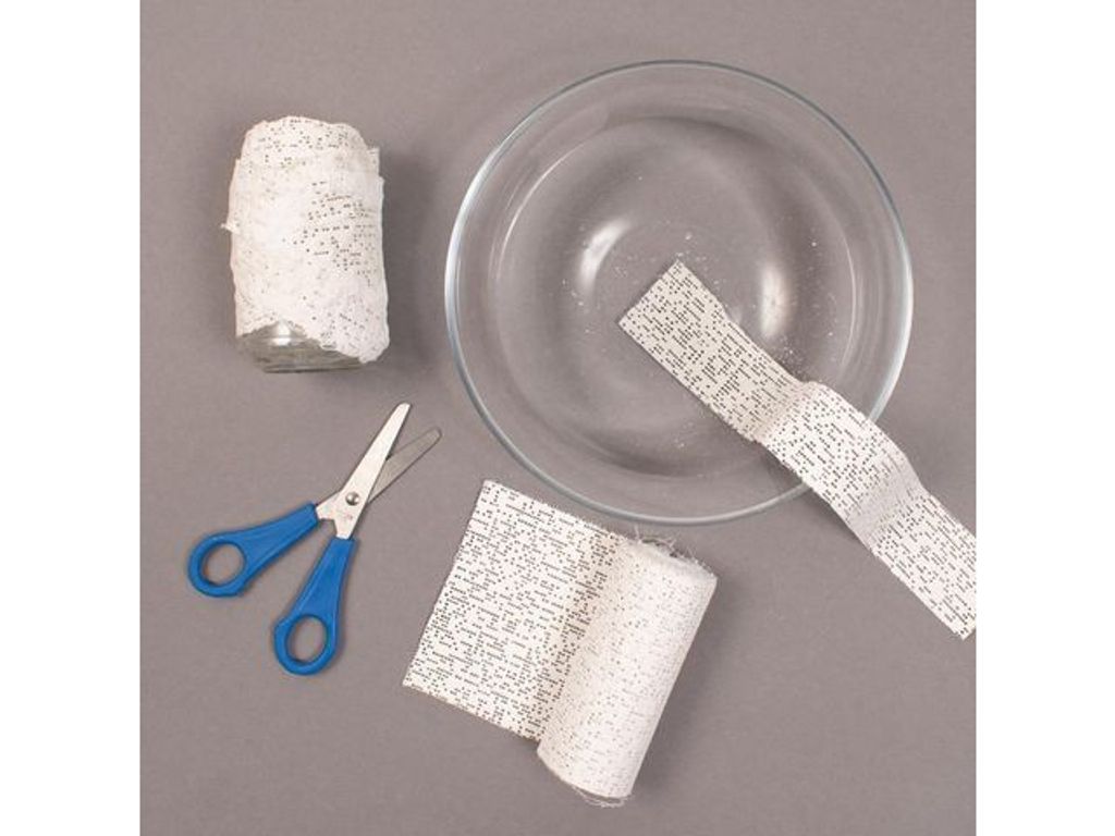 Avgjut ditt ansikte och skapa en mask, forma runt en ballong, på lera, papp eller metallnät. Klipp och doppa gipsbindan i vatten några sekunder tills den blir jämnt genomfuktad. Forma sedan efter eget önskemål. Lätt att använda och torkar fort. Gips kan du lämna i en separat behållare på återvinningscentralen. Lägg aldrig gips i behållare för brännbart avfall eller i din vanliga soppåse. - Antal: 5/FP - Längd: 3 m - Bredd: 10 cm - Färg: Vit