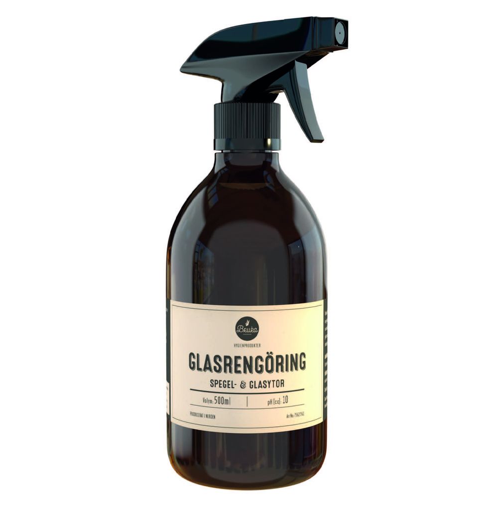 Bruka GLASRENGÖRING innehåller eteriska oljor av grönt te, som har en härligt fräsch och uppfriskande doft. Denna unika fönsterputs är specialutvecklad för att göra rent såväl glas som speglar utan att du ska behöva dras med mödosamma ränder.