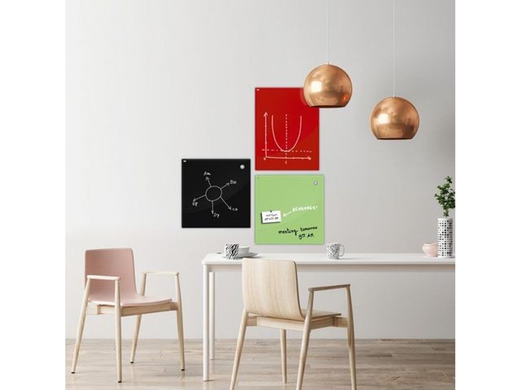 Magnetglasskiva som sitter riktigt snyggt på väggen. Lämplig för till exempel kontor, restauranger, kök och hallar. Den magnetiska ytan låter dig bifoga anteckningar, grafer, viktiga uppdateringar och liknande med magneter. Torkytan gör det dessutom lätt att ta bort bläck från glaset. Brädet levereras med en metallhållare för pennor. Tillverkad av 4 mm härdat glas, täckt med färg på andra sidan och galvaniserade plåtar ihopbundna. - Med väggfäste och avtagbar pennhållare - Kan monteras både horisontellt eller vertikalt - Typ: Glastavla - Mått: 90x60cm