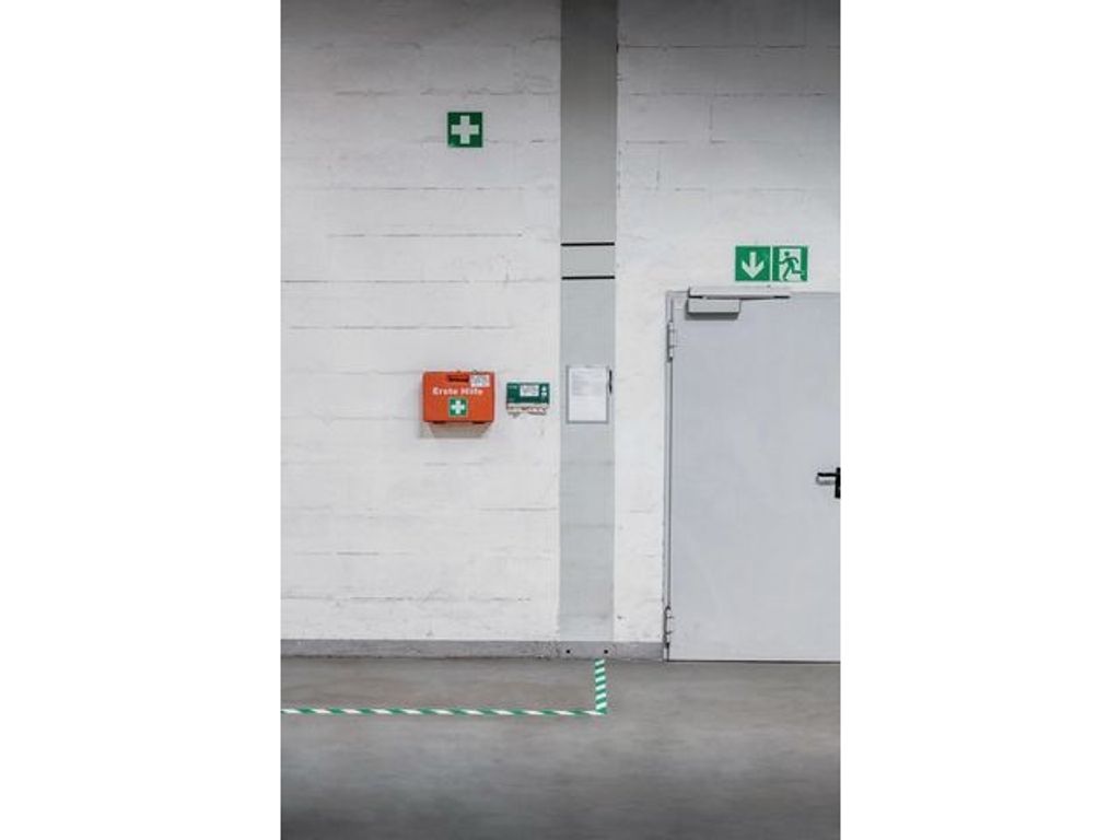 Självhäftande grön-vit randig markeringstejp för inomhusbruk. Används för permanent markering av riskområden som behöver uppmärksammas t ex trafikzoner och spärrområden. Golvmarkering DURALINE® 30m grön/vit fäster på rena och torra betonggolv. Halkskyddsgrad R9 i enlighet med DIN51130. Grön / vit varseltejp används för utrymningsvägar och första hjälpen. - Mått (B x L): Rulle om 30 m, 50 mm bred, tjocklek 0,7 mm - Färg: grön/vit