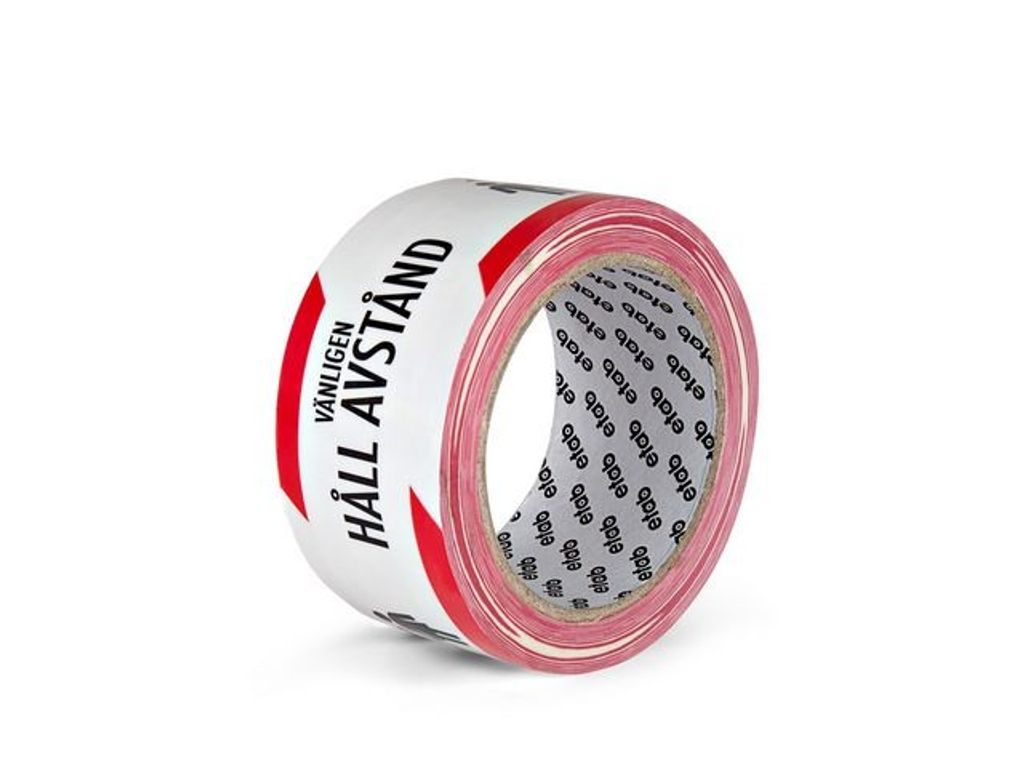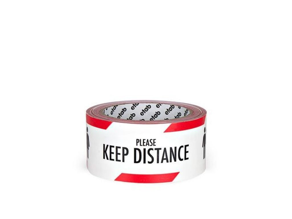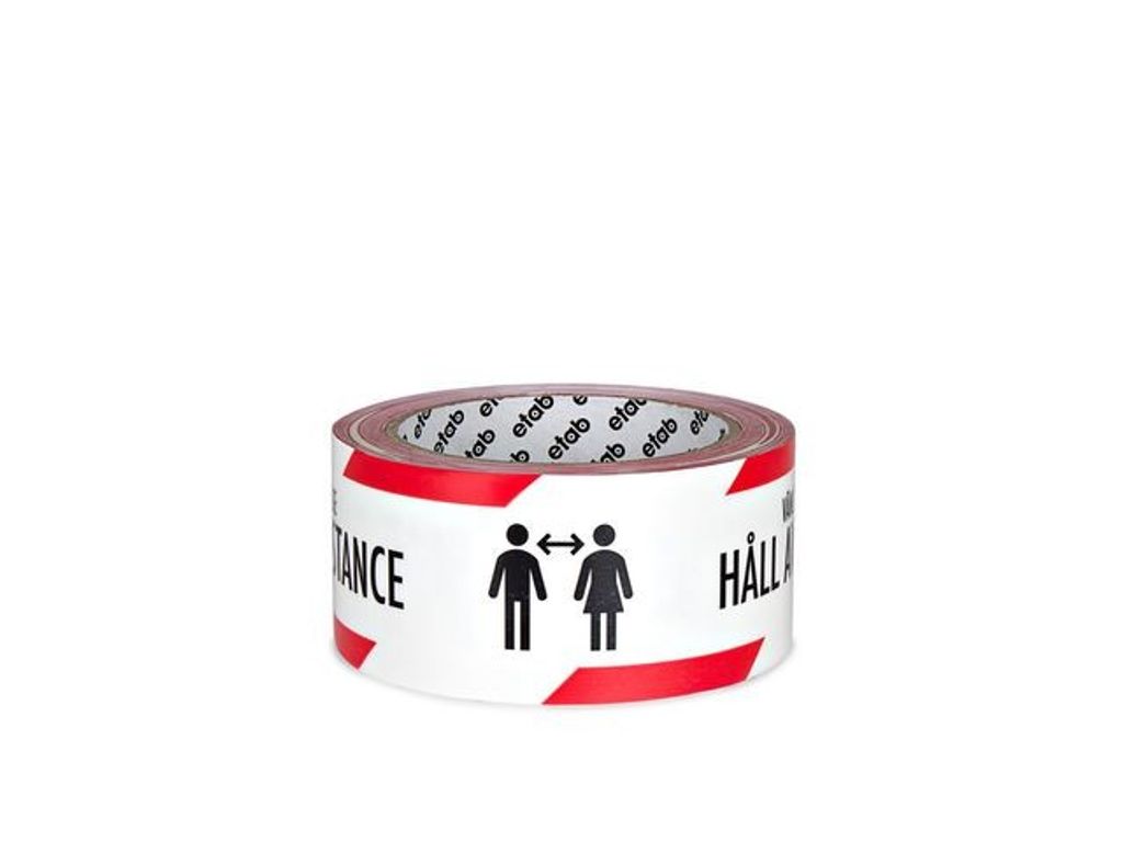 etab 9243 är en högkvalitativ tejp för golvmarkering med väl synligt meddelande VÄNLIGEN HÅLL AVSTÅND och PLEASE KEEP DISTANCE i tryck. etab 9243 är en högkvalitativ tejp för golvmarkering med väl synligt meddelande VÄNLIGEN HÅLL AVSTÅND och PLEASE KEEP DISTANCE i tryck. Används av affärer, arbetsplatser och andra offentliga platser för att skydda kunder, anställda och besökare. En stark och pålitlig tejp med en extra laminerad film för hög nötningshållfasthet. Används för att kommunicera avstånd och därmed öka säkerheten på platser med många besökande. - Mått: 50mmx33m - Tryck: Please Keep Distance / Vänligen Håll Avstånd