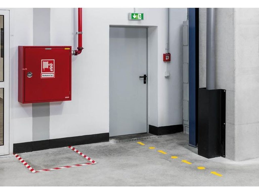 Självhäftande golvmärkningssymbol i form av en pil för att visa önskad röreleseriktning eller väg ut. Golvmarkering Pil gul 10/FP fäster på rena och torra betonggolv. Slitstarka och tåliga med halkskyddsgrad R9 i enlighet med DIN 51130. - Mått (B x H x D): Ø 100 mm, tjocklek 0,7 mm - Färg: Gul - Antal: 10