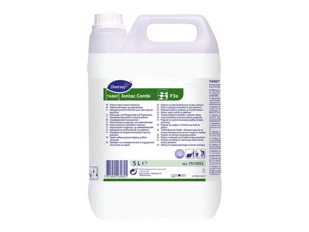 Lågskummande dagligt rengörings- och underhållsmedel för vattentåliga hårda golv. Perfekt sammansättning av tensider, polymerer och vaxer. Då produkten är lågskummande är den lämplig för användning i kombiskurmaskin. Kan användas direkt på de flesta obehandlade golv och med alla typer av polermaskiner, för att underlätta rengöring och för att skydda golvet. Torkar mycket snabbt och medger underhåll utan att området måste stängas av Jontec Combi skall spädas. Hink dosering: 50ml per 5L vatten (1%), max 5%. Dosering kombiskur: 100ml per 10L vatten (1%), max 5%. Rätt dosering och temperatur sparar pengar och minimerar miljöpåverkan - pH-värde: 8 - Lukt: Parfymerad - Utseende: Vit mjölkig vätska