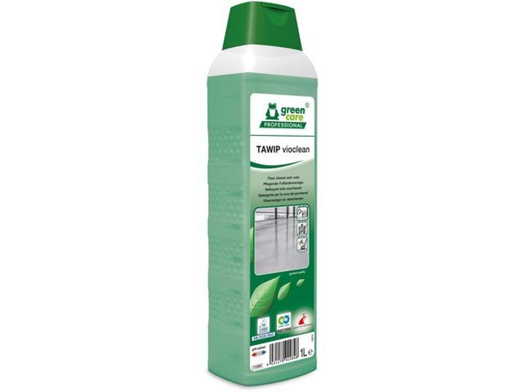 Golvrengöringsmedel med extra skyddande effekt och goda miljöegenskaper. Tawip vioclean är golvrengöring och golvvård med skyddande, vårdande egenskaper och goda miljöegenskaper. Det värnar om människors hälsa och rengöringspersonalens säkerhet. Produkten ger utmärkta resultat redan vid låg koncentration. Tawip vioclean har en naturlig kokosfettvål i formulan som hjälper till att skydda golv från lakningseffekter och lämnar dessutom en skyddande film med antistatisk effekt och minskar halkrisken i enlighet med DIN 18032-2. Produkten är perfekt för rengöring av stora ytor som flygplatser, tågstationer, butiker, stormarknader etc. - Ger ett högt halkmotstånd - Låg användningskostnad - Färg: Grön - Densitet: 0,999 - pH: 7,9/8,1 - Volym: 1 liter