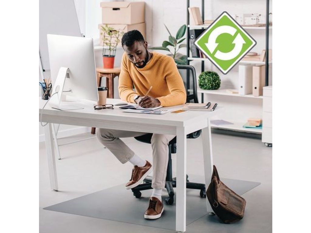 Ett golvskydd som är gjort av 50% återvunnet material med 25% förnybar energi och 100% återvinningsbart. Halkskyddad beläggning på mattans undersida förhindrar att mattan glider. - Mått: 150x120 cm - Färg: Grå