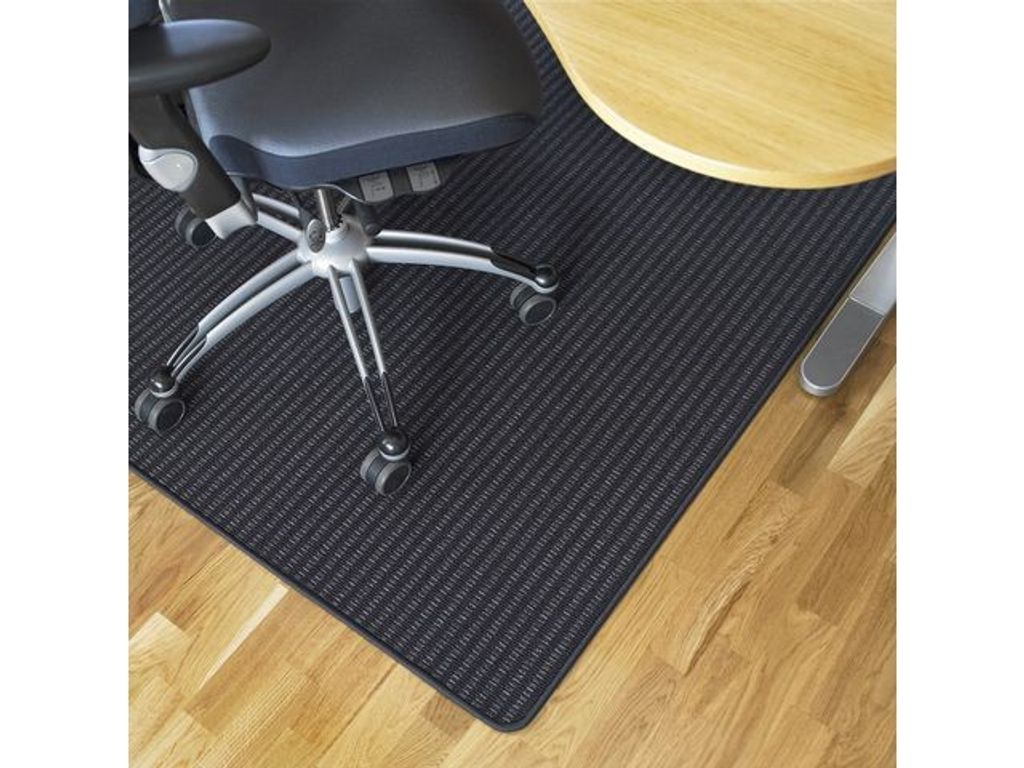 Högkvalitativt textilt stolsunderlägg med langetterad kant. Klassad enligt EN1307 och godkänd för miljöer med extra kraftigt slitage. Allergikontrollerad som lämplig för allergiker. Brandklassad som golvbeläggning, klass G av SITAC. Permanent antistatiska egenskaper enligt GSO klassificering. Hela 5 års garanti mot genomslitage. Färg: grå/svart. - PVC-fri