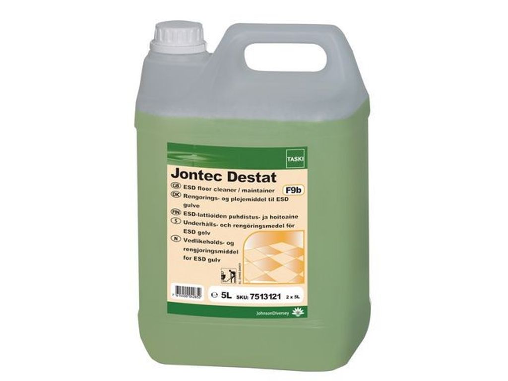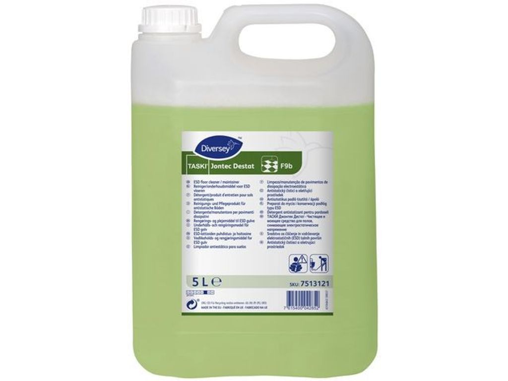 Det här anti-statiska golvrengöringsmedlet avleder elektriska laddningar på golv och är säker att använda på de flesta vattentåliga hårda ytor. Använd det här effektiva rengöringsmedlet från Taski på standardgolv i kontoret eller hemma. Det distribuerar elektriska laddningar över ett större område och minskar då risken för elektriska stötar. Den kraftfulla pH-neutrala sammansättningen rengör golv som torkas för hand med lätthet, och vätskan kan också användas i golvskurmaskiner. Efter rengöring av en yta och vid regelbunden användning kan du helt enkelt låta den torka utan efterföljande avtorkning för maximal effektivitet mot elektrostatiska stötar. - Effektivt golvrengöringsmedel för hårda ytor - Antistatiska egenskaper - Sammansättning med neutralt pH-värde - Kan användas för manuell rengöring eller i maskiner - Färg: Grön - pH: ˜10(outspädd) - Volym: 5 liter