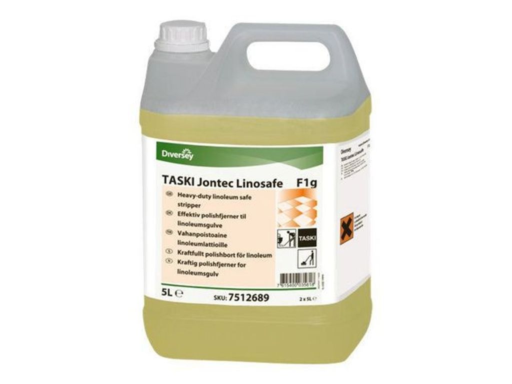 Polishbort för linoleum. Missfärgar aldrig vid normal användning. För singelskurmaskin och sköljning med vatten. - pH-värde: ca 10 (koncentrat) - Lätt parfymerad - Dosering: Jontec Linosafe skall spädas. Dosering hink: 1L till 5L vatten (20%), max 50%. - Utseende: Blek, Gul vätska