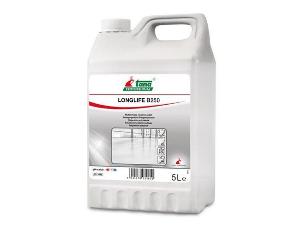 Speciella formeln ger en kombinationen av rengöring och vård. LONGLIFE B250 har mångsidiga egenskaper som minskar ytterligare hantering, tid och kostnader. Ger en halksäker yta (enligt DIN 51131), med en ljus sidenglans. Den speciella formeln ger en kombinationen av rengöring och vård. Är utmärkt att använda på alla vattentåliga typer av golv som kan beläggas, som t ex PVC, linoleum, elastomerbeläggningar etc. Använd inte på oförseglade trä och polerade stengolv. - pH-värde: 8.2 (koncentrat) - Oparfymerad - Dosering: Ny behandling: Koncentrerad. 2 l/100 m², Manuell rengöring: 10-20 ml/L, Sprayrengöring: 200 ml/L. - Utseende: Vit vätska