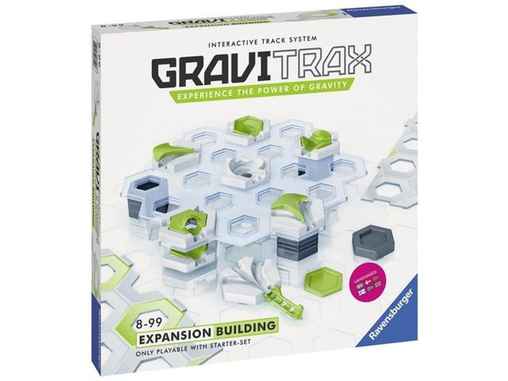 Med Gravitrax påbyggnadsset Building kan du på ett kul och spännande sätt bygga ut ditt Gravitrax startset! Få ännu fler möjligheter! Med den här satsen utökar du ditt kulbanesystem genom att kombinera fler bottenplattor och andra byggelement med din GraviTrax® startsats. Få fler kombinationsmöjligheter och bygg ännu komplexare världar av kulbanor. Via hur många omvägar kan din kula komma i mål? - Innehåll: 2 bottenplattor, 1 transparent nivå, 8 höjdblock stora, 4 höjdblock små, 2 växlar, 1 3-in-1, 1 virvel, 1 mållinje, 4 basblock, insatser för basblocken: 2 infångare, 1 fritt fall, 1 splash, 1 mål - Kan endast spelas med GraviTrax® startsatsen. - Varning. Lämpar sig inte för barn under 3 år