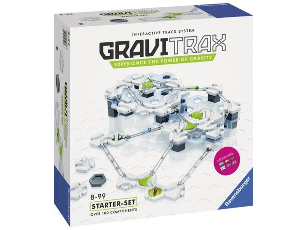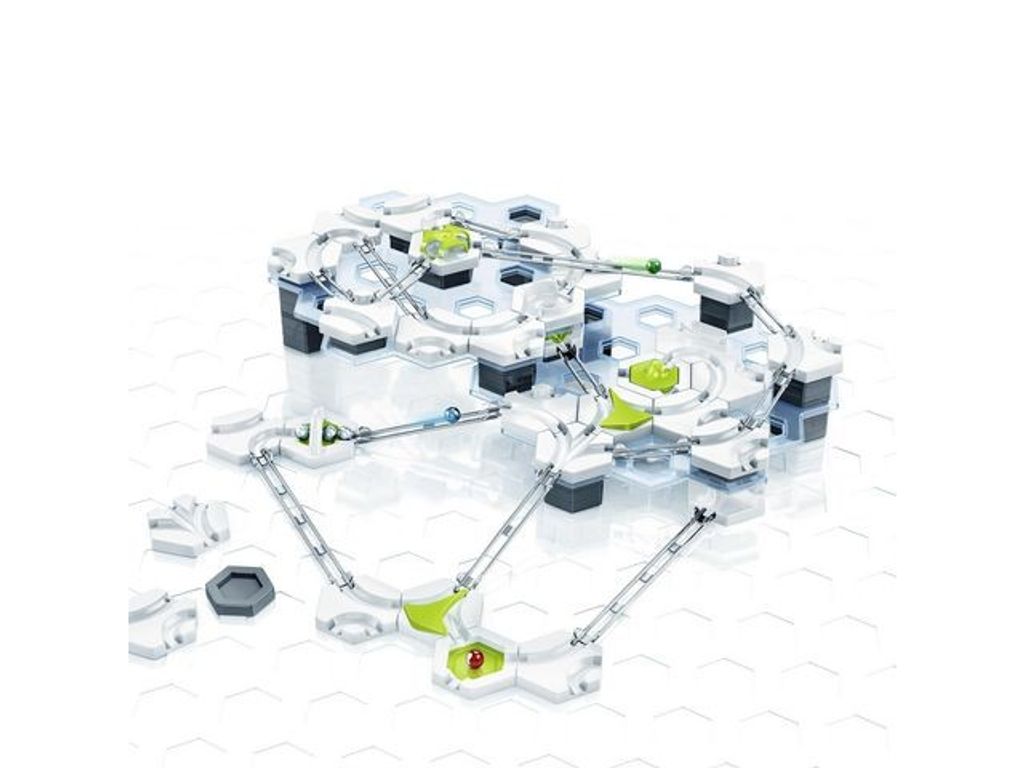 Med GraviTrax® kulbanesystem bygger du egna världar av kulbanor. Med byggelementen skapar du en fartfylld bana som kulorna rullar i mål på. GraviTrax® kulbanesystemet kan göras oändligt större med utökningar och garanterar gränslöst bygg- och spelnöje! Innehåll: Anvisningar, ett häfte med byggplaner och ett häfte med uppgifter 4 st bottenplattor 2 st transparenta nivåer 6 st kulor Höjdblock: 40 st stora och 12 st små 21 st kurvor, 3 st korsningar, 2 st växlar, 1 3-in-1, 1 startblock och 1 magnetiskt action-kanon Spår: 3 st långa, 6 st medellånga och 9 st kortare 1 mållinje, 4 st basblock, samt insatser för basblocken: 2 infångare, 1 fritt fall, 1 splash, 1 mål. - Varning. Lämpar sig inte för barn under 3 år