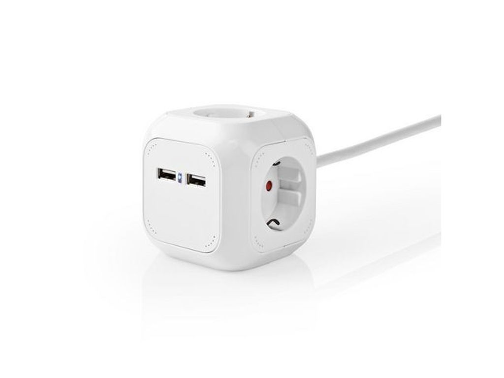 Nedis® kubformade uttag är utrustat med kabel av hög kvalitet (3x 1.5 mm²) och är ledande inom grenuttag för konsumentmarknaden. Det har 4 barnsäkra eluttag som gör att du slipper koppla i eller koppla ur enheter hela tiden. Det lilla formatet och den specifika formen gör att det här grenuttaget kan användas nästan överallt. 2 USB-portar ingår, med en sammanlagd effekt på 10.5 W (2.1 A) för att ladda dina mobila enheter eller driva USB-Bluetooth®-högtalare så att du kan lyssna på musik samtidigt som du får jobbet gjort. - Kubformat grenuttag - 4-vägs - 2x USB - 1.5 m 3x 1.5 mm² - Vit