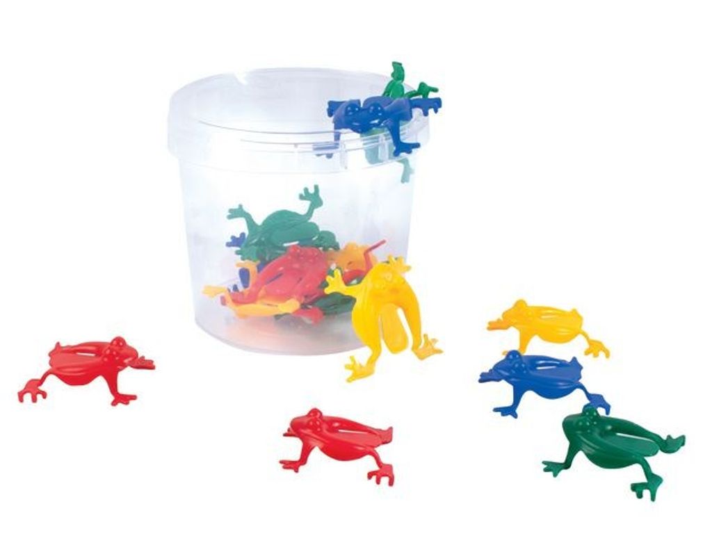 Tidslöst grodspel som är en rolig sällskapsaktivitet för både vuxna och barn. En underhållande sysselsättning speciellt anpassad för de yngre. Ge grodorna en lätt tryck och se dem hoppa in i hinken. Den spelare som lyckas få flest grodor i hinken vinner spelet! - Antal: 16 st - Storlek grodor: 5,2 x5,3x20 mm - Färg på grodor: gul, grön, blå, röd