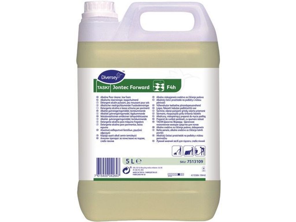 Ett koncentrerat och kraftfullt golvrengöringsmedel som tar bort svåra fläckar. Det här alkaliska golvrengöringsmedlet är ett tillskott som fullbordar ditt utbud av rengöringsmedel. Den kraftfulla formeln hos Grovrengöring TASKI JONTEC Forward 5L kombinerar starka tensider och alkaliska kemikalier för att på ett kraftfullt sätt bryta ner oljor, fett och avlagringar från underhållsprodukter. Det räcker med en liten dos för att du ska kunna känna dig säker på att dina vattentåliga golv ska bli effektivt rengjorda. Formeln är utformad för att förbereda golv för beläggning, vilket gör det enklare att avlägsna lim och rester för att bättre möjliggöra vidhäftning av ytterligare beläggningar. Den lågskummande formeln verkar snabbt och torkar med en klar och ren finish. Det är det perfekta valet för kombiskurmaskiner, men lämpar sig även för moppmaskiner och golvvårdsmaskiner. - Kraftfullt rengöringsmedel som tar bort smuts och rester från golv - Kvalitativt strippningsmedel som förbereder golv för ytterligare beläggningar - Skär genom olja, fett, gummi och jord - Säkert för alla vattentåliga, hårda golv - |Kan användas manuellt eller i maskiner - Alkalisk lösning - Återvinningsbar förpackning - Certifiering: Svanen, EU Ecolabel - Färg: Genomskinlig - pH: ˜10(outspädd) - Kapacitet: 2 x 5 l