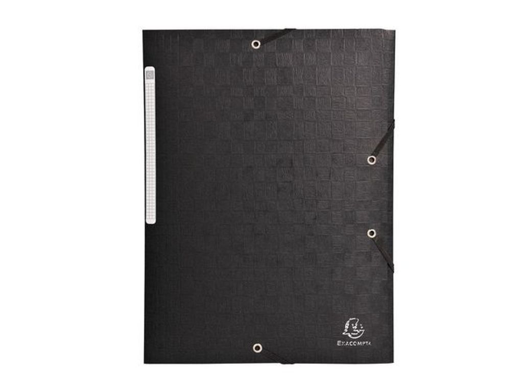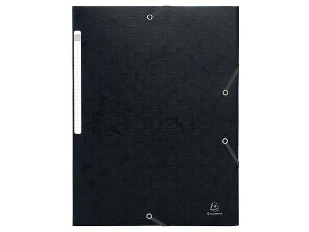 Den snygga och miljövänligare Exacompta Nature Future® 3-klaffmappen med elastiska gummiband förvarar och skyddar alla dina A4-dokument på ett effektivt sätt. Förvara och skydda alla A4-dokument effektivt i en Exacompta Nature Future® 3-klaffmapp med elastiska gummiband. Med 3 klaffar på insidan och 2 elastiska gummiband på utsidan skyddar den effektivt dina dokument. Med etiketten på ryggen ser du snabbt vad den innehåller. Den här mappen är tillverkad av hållbart producerad FSC®-certifierad hårdglaserad presspan och är en högkvalitativ, miljövänligare och hållbar lösning för dina arkiveringsbehov. Den präglade ytan ger också den här mappen ett elegant och snyggt utseende. - Rymmer A4-dokument - 2 elastiska gummiband för säker förslutning - Etikett på ryggen för snabb identifiering av innehållet - Tåliga och miljövänligare - Elegant utseende - Material: 600 g/m² FSC®-certifierad hårdglaserad, präglad marmorerad presspan - Mått: 240 x 320 mm - Rygg: 35 mm - Färg: Svart - Certifiering: ISO 9706