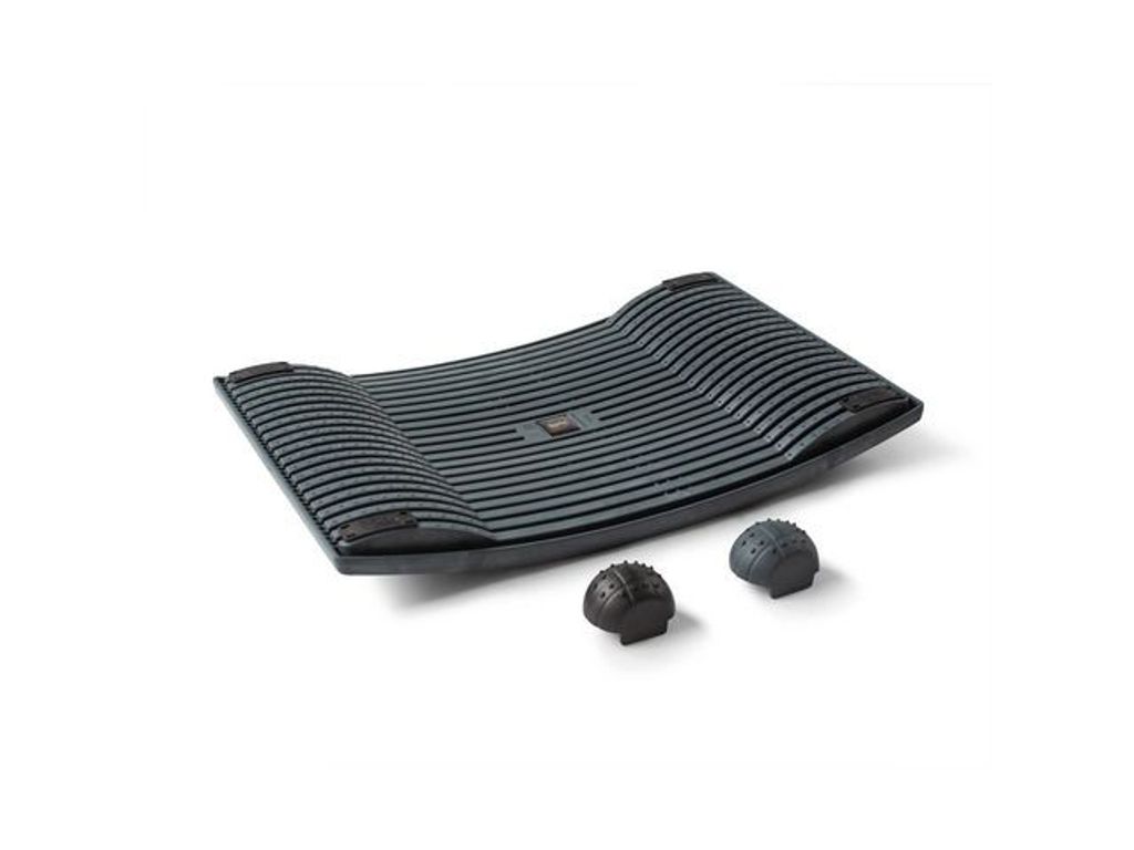 Gymba är ett nytt och hälsosammare sätt att arbeta! Det är en revolutionerande aktivitetsbräda som hjälper dig att röra dig medan du arbetar. Du motionerar ständigt på din arbetsplats och din ämnesomsättning och blodcirkulation aktiveras. Du bränner mycket mer kalorier med Gymba än när du sitter eller står stilla. Din koncentration och motivation förbättras, allt medan du känner dig mer vaken. Gymba är elastisk och tillverkas och utvecklas helt i Finland. Tack vare sin elasticitet möjliggör Gymba mer mångsidig rörelse, aktivitetsbrädan är utformat för att hjälpa dig att stå ordentligt. Gymba hjälper dig att balansera ditt stående och anpassar sig till din vikt. Den är enkel att använda, lägg bara brädan under fötterna. Placera Gymba aktivitetsbrädan under fötterna medan du står och arbetar, arbeta sedan helt normalt. Brädan hjälper dig att stå ordentligt och inte spänna benen eller ryggen lika mycket. - Färg: Grafit - Tillverkas i Finland - Storlek (bxdxh): 465x305x55 mm - Material: Ekologiskt komposit - Maxbelastning: 300 kg
