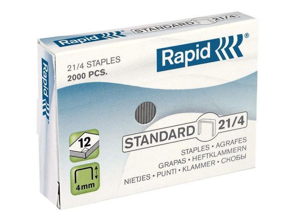 Häftklammer Rapid Standard 21/4 galvaniserad , ask om 2000 Mjuk klammertråd för bra komfort (upp till 15 ark). För häftning upp till 15 ark (80 g/m2). Varje ask innehåller 2,000 häftklammer. Grön symbol för att förstärka segmentering - STANDARD. 4 mm benlängd. Galvaniserad mjuk tråd för bekväm användning. Skarpa kanter för bästa penetrering.