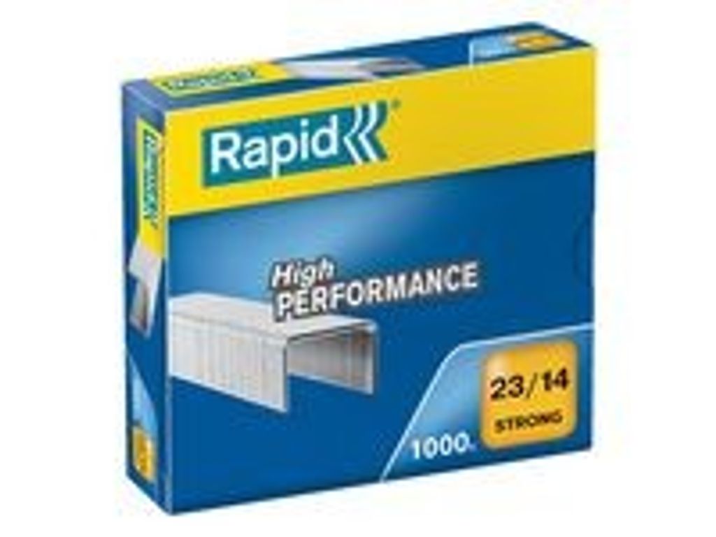 Beskrivning av Häftklammer RAPID 23/14 1000/fp Rapid Strong Häftklammer i storlek 23/14 av galvaniserat stål i en förpackning om 1000st som passar till Fashion HD110 eller HD210. Häftklammer som gör dokumenthäftning både enkel och hållbar. - Passar till Fashion HD110 eller HD210