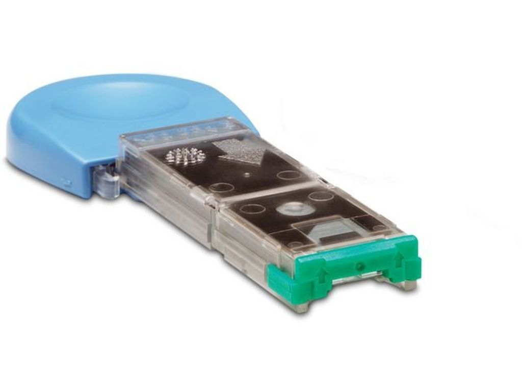 Ladda denna HP häftklammerkassett i kompatibla LaserJet-skrivare för effektiv sortering av dokument och projekt. Sortera dokument för smidiga presentationer med denna HP-häftklammerkassett för HP LaserJet-skrivare. Med 1 000 metallklamrar förinstallerade i kassetten är det enkelt att kopiera och sortera med en knapptryckning på kontorsskrivaren. Denna HP-häftklammerkassett skjuts enkelt in på några sekunder och håller jobben igång utan en massa stillestånd. - Sortera dokument när de skrivs ut - Kompatibel med HP LaserJet - Innehåller 1 000 häftklamrar per kassett - Fungerar med 500-arks häftapparat - Förpackade i genomskinlig kassett - Färg: Silver