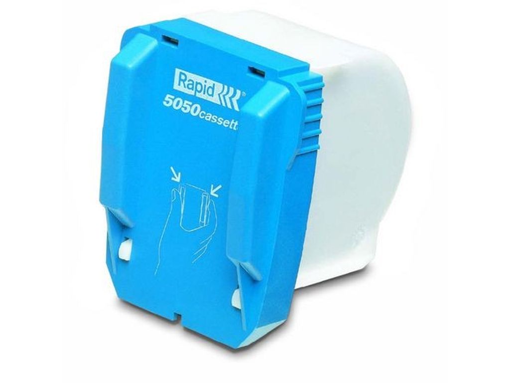 Häftkassetten R5050 är enkel att fylla på och byta ut, vilket innebär att den sparar in tid vid häftningen och ger därför snabba och effektiva resultat. Kassetten R5050 har skapats för den elektriska häftapparaten Rapid 5050e, innehåller 5 000 häftklamrar och låter dig häfta upp till 50 pappersark på 80 g/m² åt gången. Det är ett praktiskt verktyg för alla slags kontor. Du behöver bara fylla på den elektriska häftapparaten med kassetten så kan du vara säker på att alla dina dokument kommer att vara noggrant häftade och sitta ihop. Den patenterade konstruktionen gör kassetten enkel att fylla på, och slitna delar kan bytas ut med varje ny kassett, så det är en praktisk lösning för hektiska kontor där dokumenten behöver häftas snabbt och effektivt. Kassetten Rapid R5050 i blått och vitt är tillverkad av galvaniserat stål, är hållbar och 85 x 70 x 88 mm stor. - Kan häfta upp till 50 pappersark (80 g/m²) - Har plats för 5 000 klamrar - Patenterad konstruktion som är enkel att fylla på - Slitna delar ersätts med varje ny kassett - Kompatibel med den elektriska häftapparaten 5050 från Rapid - Tillverkad av stål - Storlek: 85 x 70 x 88 mm