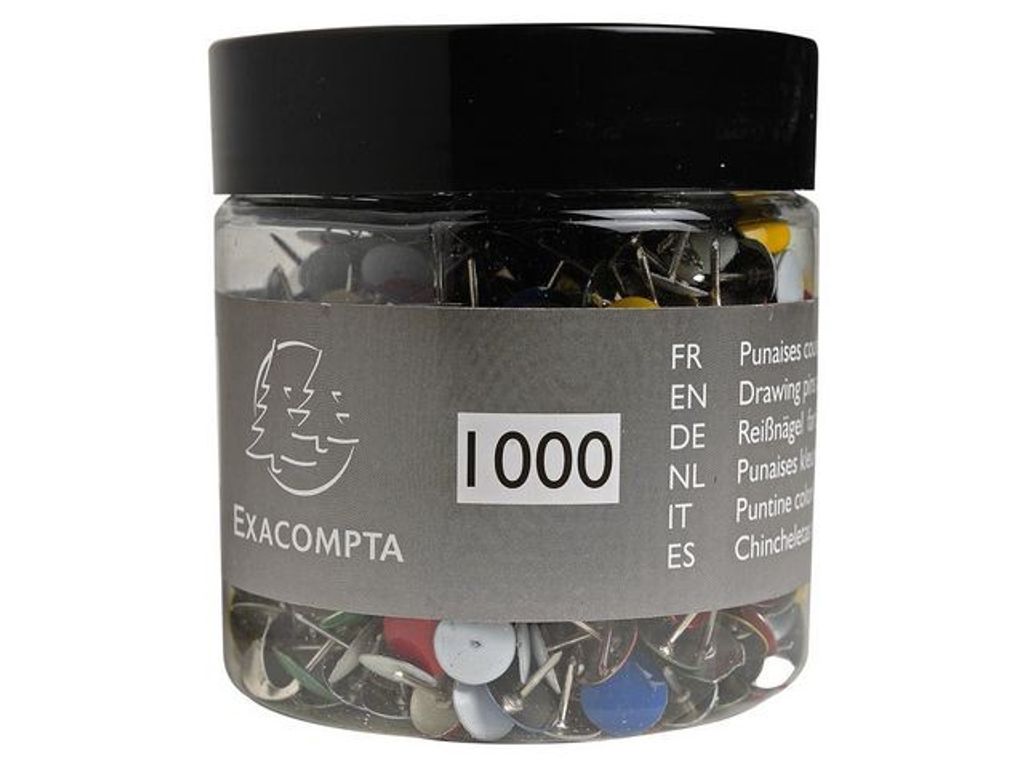 Beskrivning av Häftstift EXACOMPTA sort.färger 1000/fp Klassiska häftstift i blandade färger till anslagstavla eller vägg. Häftstift i utvalda färger med ett huvud på 9 mm och en längd på 7 mm. - Antal per ask: 1000st