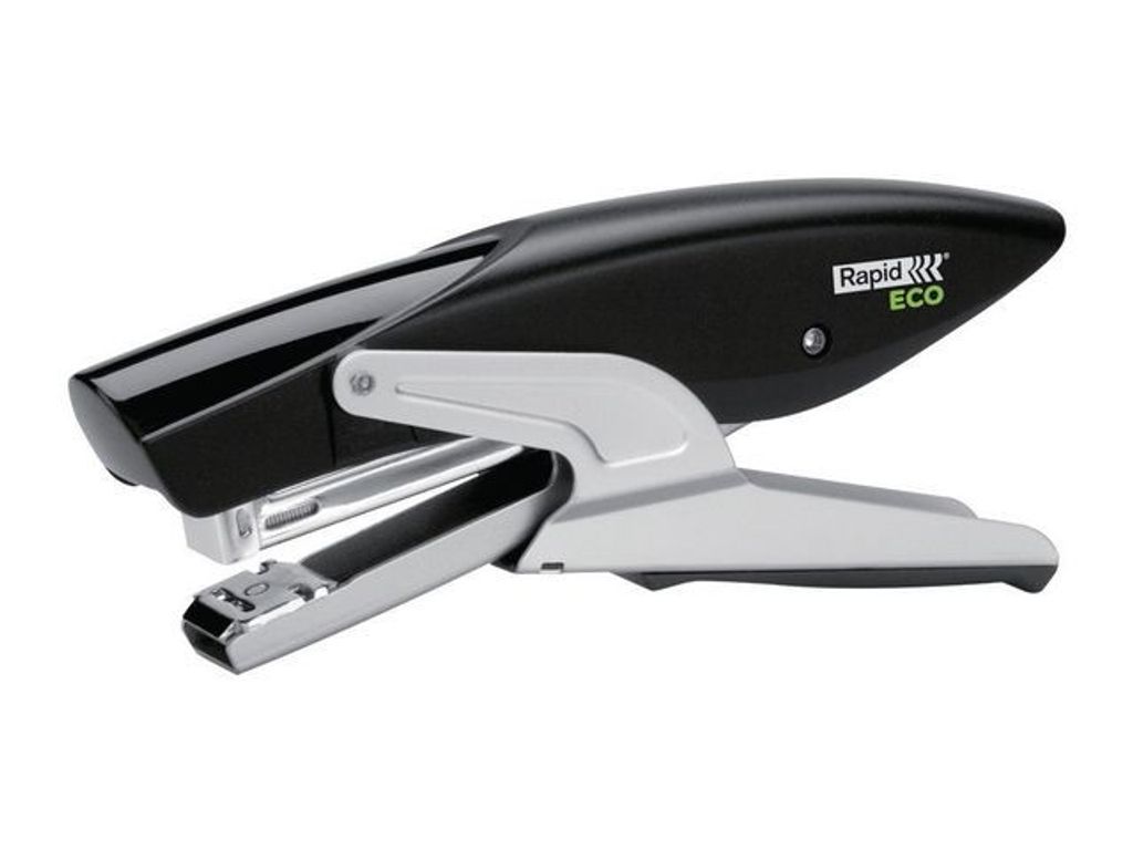 Stark, stabil och miljövänlig! Häfttång tillverkad av 80% återvunnen plast. Häfttången kan tas isär, så att delarna kan sorteras miljövänligt. Kapacitet: Upp till 20 ark och klarar häftklamrar 24/6 och 26/6. - Häftar upp till 10 pappersark (80 g) - Lätt att ta med - Använd 24/6 eller 26/6 Rapid Standard häftklamrar - 55 mm insättningsdjup