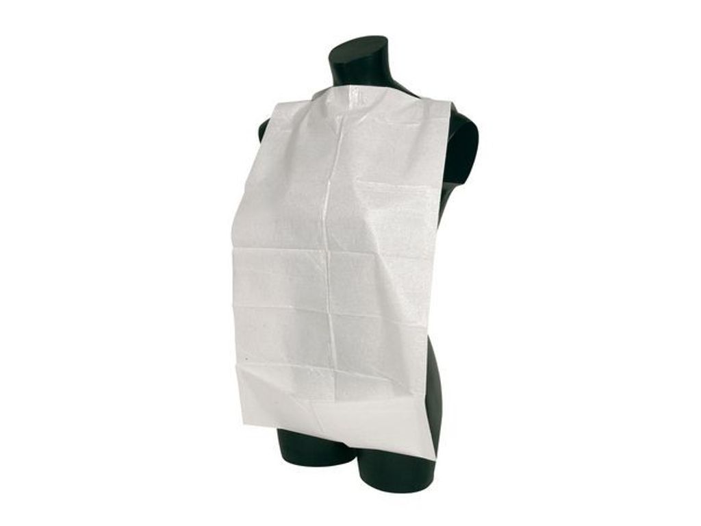 Beskrivning av Haklapp 37x70cm 900/fp Haklapp med knytband och vändbar ficka. Polyeten och tissue, oblekt. Förstärkt knytband, färdigvikt. Med laminerad baksida. - Vändbar ficka - Mått: 37 x 70cm