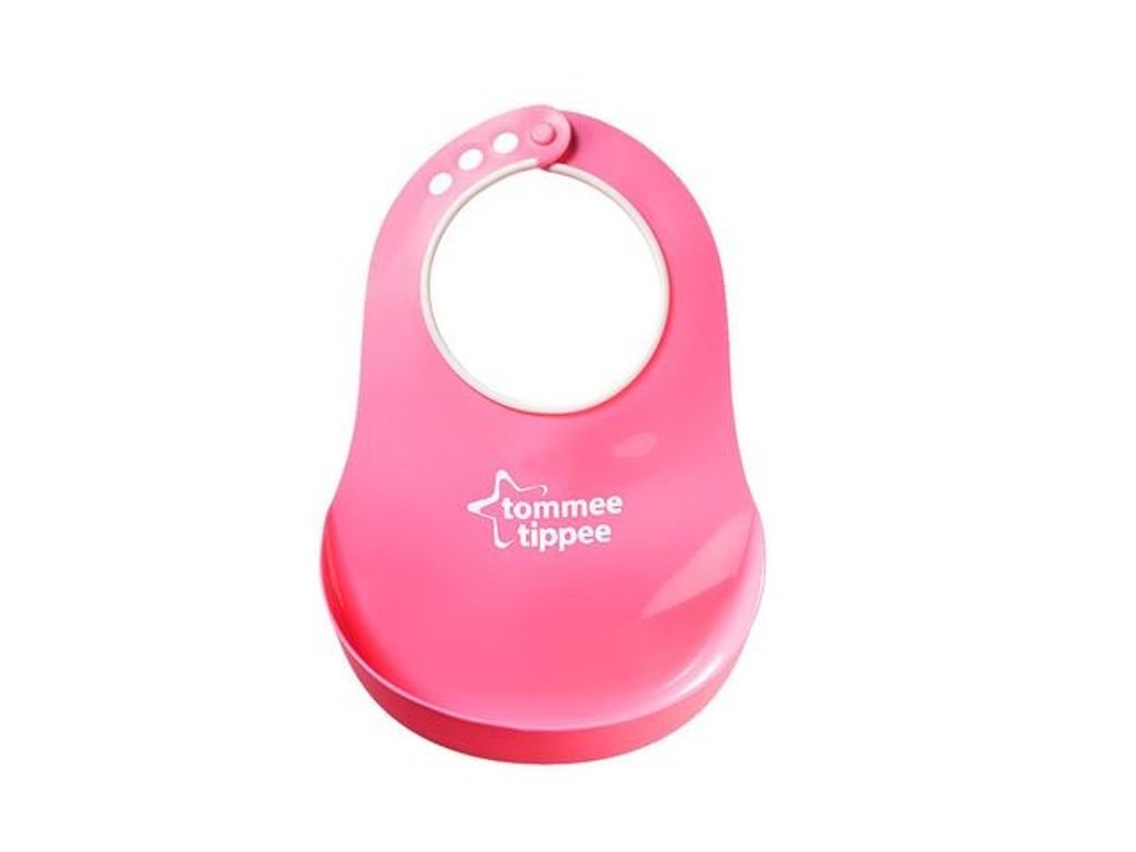 Haklapp med praktisk spillficka. En bekväm haklapp som har små fördjupningar på baksidan för att skydda känslig hud och den är lätt att torka rent samt tål diskmaskin. - Stor spillficka - Tål rengöring i diskmaskin - Passar barn 6 mån + - BPA-fri - Tillverkad av Polyeten - Färg: Sorterade (grön, orange och rosa)
