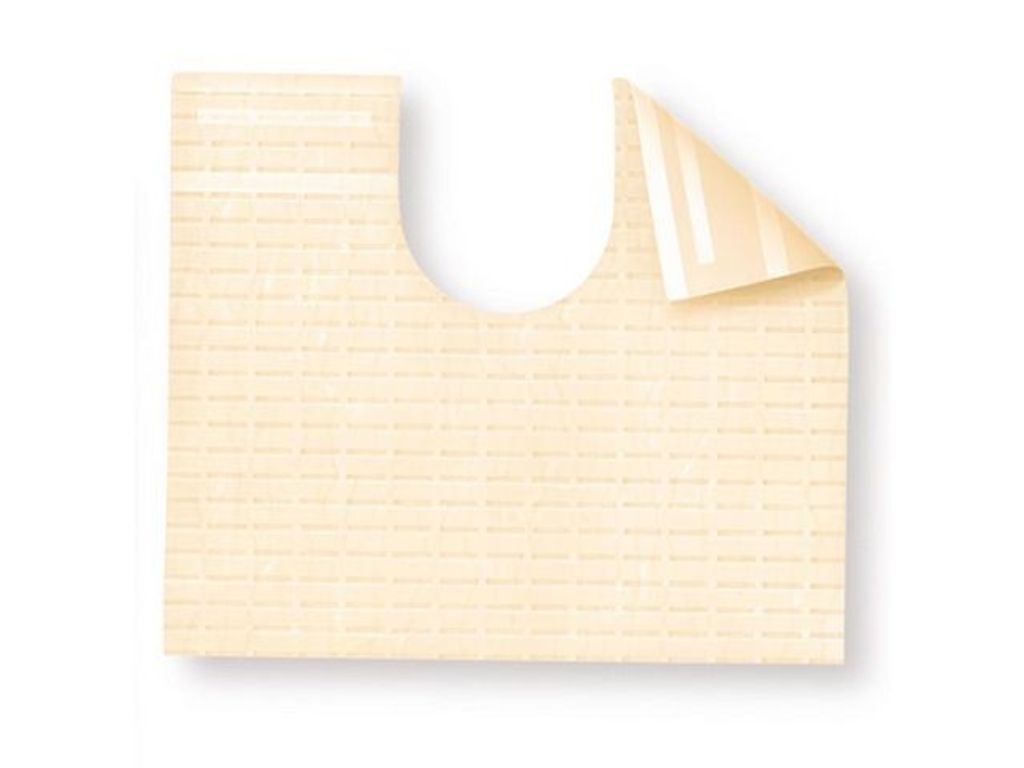 Hygienisk haklapp som används som skydd vid måltid. Tillverkad av absorberande cellulosa och har ett ogenomträngligt lager av plastfilm samt en ficka längst ner för uppsamling av spill. Enkel fixering på kläder genom självhäftande remsor utan att lämna limrester på kläder. - Material: TCF-blekt tissue, Aprikos PE-film, Lim - Mått: 37x65cm