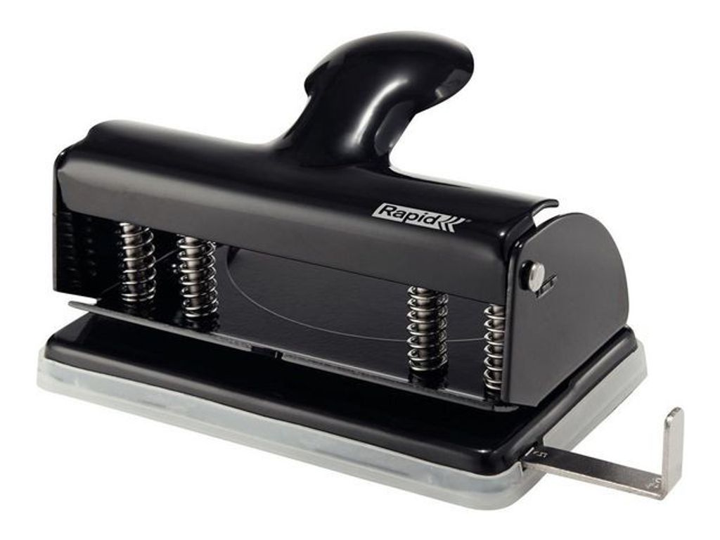 Rapid® hålslagaren är utformad för att stansa 10 ark på 80 g/m² på ett effektivt sätt och den är lämplig för användning i hemmet, i skolan och på kontoret. Rapid® hålslagare gör att du kan organisera dina fakturor, räkningar och viktiga dokument på ett prydligt sätt. Hålslagaren har en ställskena, vilket ger exakta stansningar för pappersformaten A6, A5, A4 och fler därtill. Den här hålslagaren i metall gör fyra hål och kan användas länge. - Hålslagaren är kompatibel med A6-, A5- och A4-pappersformat - Passar för hemmet, skolan eller kontoret - Inkluderar ställskena - Material: Metall och etylenvinylacetat (EVA) - Hålslagskapacitet: 10 ark - Antal perforeringar: 4 - Färg: Svart magi - Vikt: 600 g - Mått: 70 x 150 x 100 mm