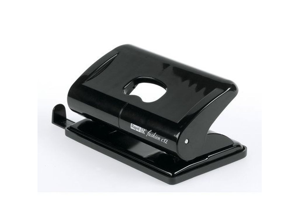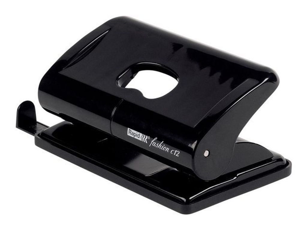 Beskrivning av Hålslag RAPID FC12 svart Kompakt hålslag Rapid FC12 för små pappersbuntar Svart hålslag - Klarar 12 ark - Ställskena