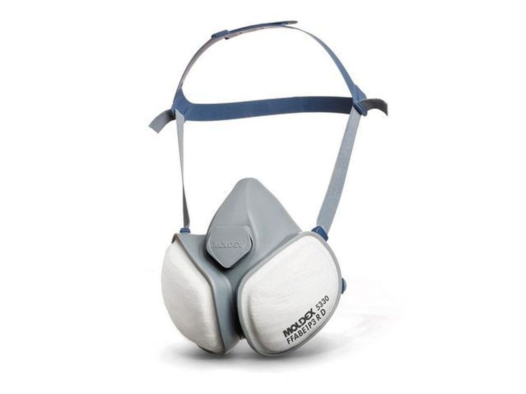 Halvmask från Moldex är ett pålitligt skydd mot gaser, ångor och partiklar. Halvmask MOLDEX 5330 FFABE P3 R D har horisontellt formade integrerade filter som ger ett exceptionellt brett synfält. Plisserad filterteknik minskar inandningsmotståndet med upp till 50 % med bibehållen filtreringsprestanda. Lätt och kompakt halvmask. - CE-certifierad - Godkänd enligt: EN 405:2001+A1:2009 - PVC fri - Vikt: 270g - Klass: FFABE1P3 R D