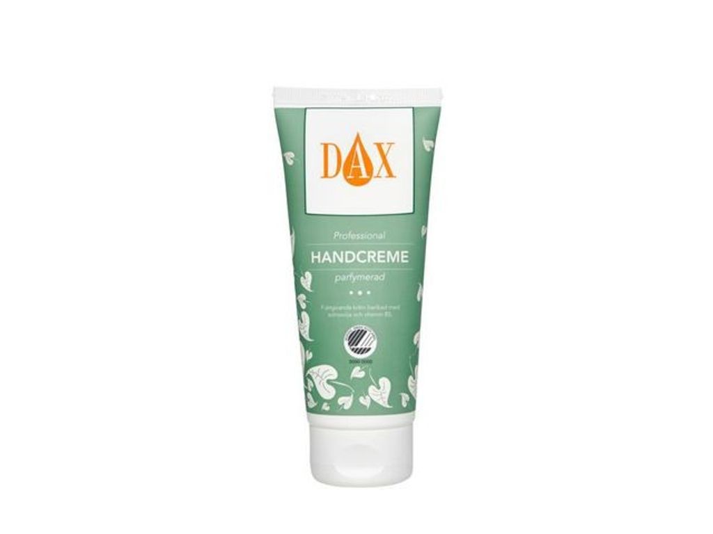 DAX Professional handcreme är en mjukgörande och lugnande salva för extra torr och känslig hud. Faktorer som väder och vind, arbete med handskar m.m. utsätter huden för påfrestningar och skadar dess naturliga sätt att skydda sig själv. Man behöver därför hjälpa huden med återfuktningen. DAX Professional handcreme är skapad med miljön så väl som människan i fokus och är en lätt handcreme som ger snabb återfuktning under arbetsdagen. Handcremen är baserad på vegetabiliska oljor och innehåller solrosolja, allantoin och vitamin B5 som hjälper till att återuppbygga hudens naturliga barriär. Miljömärkt med Svanen. - pH-värde: på ca 5 - Parfymerad - Svanen: Licensnummer 50900115