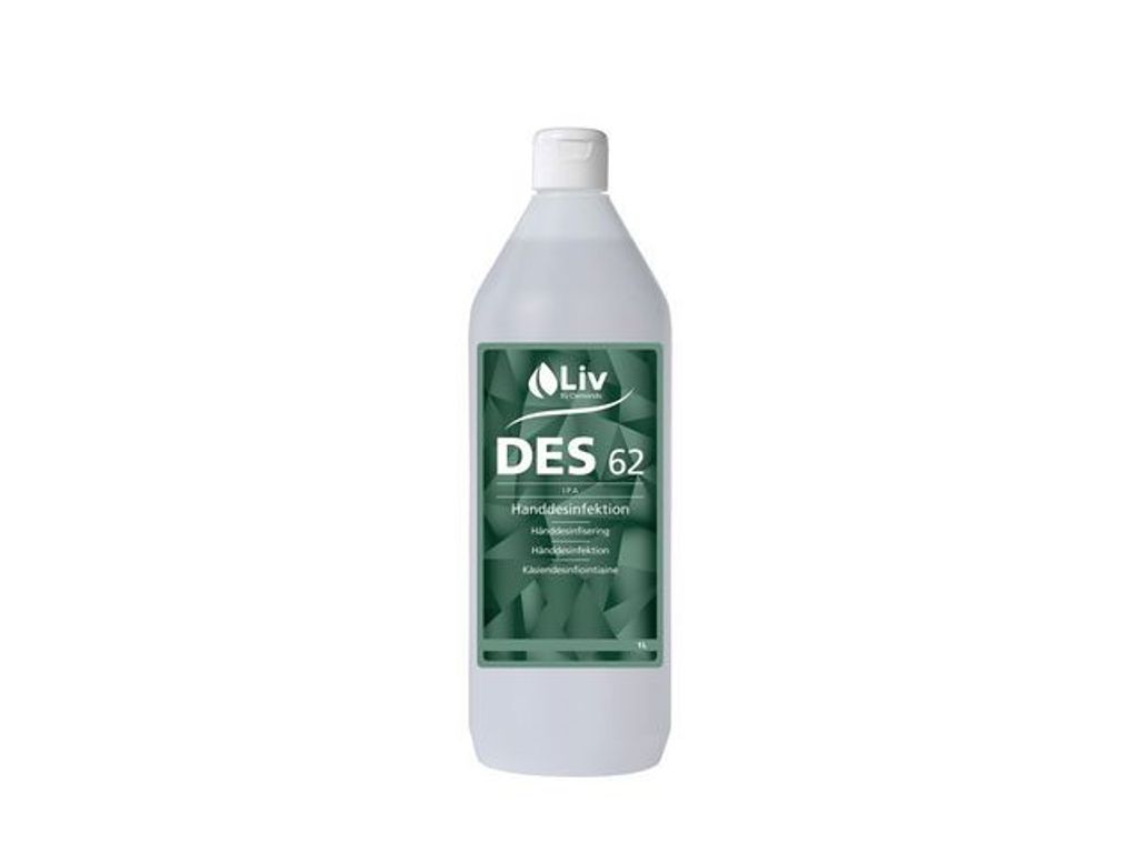 IPA baserad flytande handdesinfektion. Liv Des IPA 62 är en hygienisk handdesinfektion som innehåller 62 vol % alkohol (isopropanol med etanol). Produkten är effektiv mot bakterier, jästsvamp, mykobakterier och höljeförsedda virus ( tex förkylning, influensa, corona). Den flytande konsistensen gör den lämplig för all yrkesverksam handdesinfektion där du spritar händerna frekvent t.ex sjukvård, äldrevård, tandvård och djurvård. Appliceras på torra och rena händer. Innehåller även glycering för att återfukta händerna och förhindra uttorkning. Produkten är testad enligt EN1500, EN13727, EN13624 samt Höljeförsedda virus enligt EN14476. Använd biocider på ett säkert sätt. Läs alltid etiketten och produktinformationen före användning. Tillverkad i Sverige. - 1L - Dosering: 4ml på torra och rena händer under 30 sekunder - pH-värde: 7,5 - Utseende: färglös/klar vätska