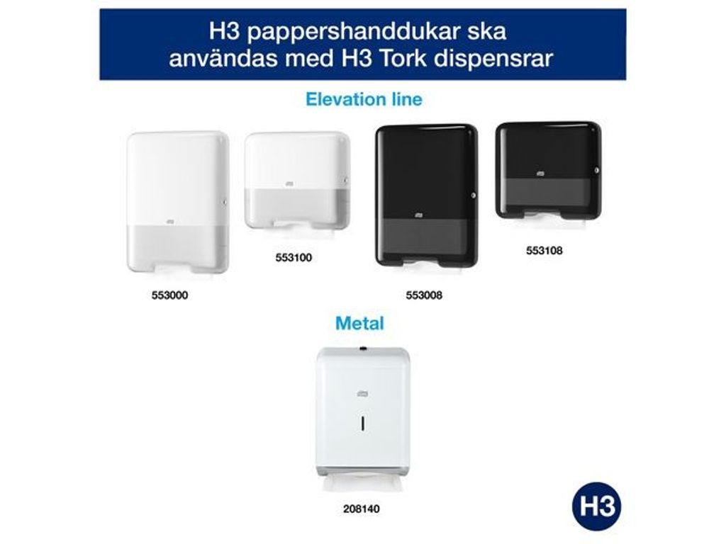 Beskrivning av Handduk TORK Adv H3 2-lag vit 3750/fp
