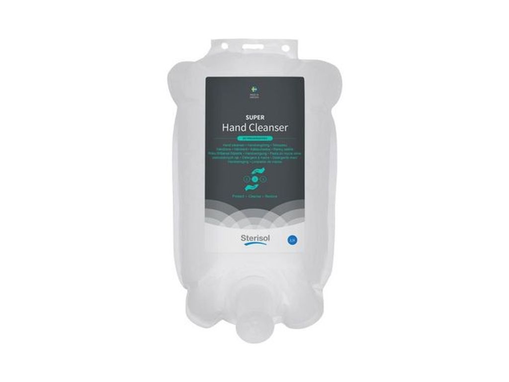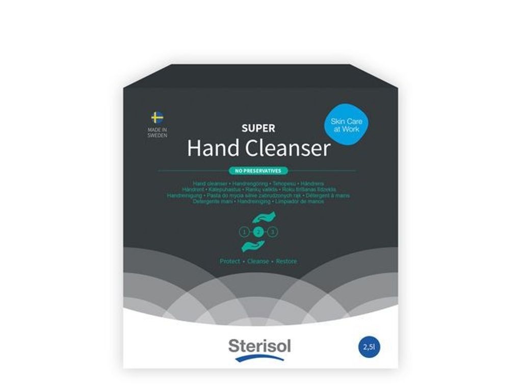 En skonsam handrengöring, som inte skadar hudens normala barriärfunktion. SUPER Handrengöring är speciellt lämpad för smutsiga miljöer, där man utsättes för torr eller fet smuts och behöver en effektiv men samtidigt skonsam produkt för att rengöra sina händer. Innehåller majs som friktionsmedel och är mycket effektiv mot besvärlig smuts. 89% av innehållet i SUPER Handrengöring har naturligt ursprung, (beräknat enligt Natural Origin Index från ISO16128). Måste användas med dispenser, annars kan läckage uppstå. - Milt parfymerad - Innehåller majs som friktionsmedel - Fri från konserveringsmedel och färgämnen - Innehåller vegetabiliska oljor, som både löser smuts och återfettar huden - Sterisol System - pH-värde: ca 7 - Volym: 2,5 Liter