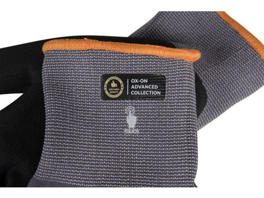 En slitstark och smidig handske i mycket bra kvalitet. Touch screen kompatibel och livsmedelsgodkänd. OX-ON Flexible Advanced 1900 är bekväm att bära dag efter dag oavsett vilket yrke du har. Den är stickad i nylon och elastan som ger en unik andningsaktivitet, samtidigt som smidigheten och komforten är oslagbar. Handflatan och fingrarna är belagda med ett nitrilskum i specialkvalitet som gör att du har en precis fingerkänsla och ett perfekt och säkert grepp. Lämplig för användning inom bygg, industri, transport, logistik, lager, fastighetsskötsel och liknande. - Ce-märkt - Certifierad enligt: EN 407:2004, EN 420:2003+A1:2009, EN 388:20 - Skyddsklass: II - Livsmedelsgodkänd - Material: nylon, elastan, nitril - Touchscreen kompatibel - Färg: grå,svart - Storlek: 11