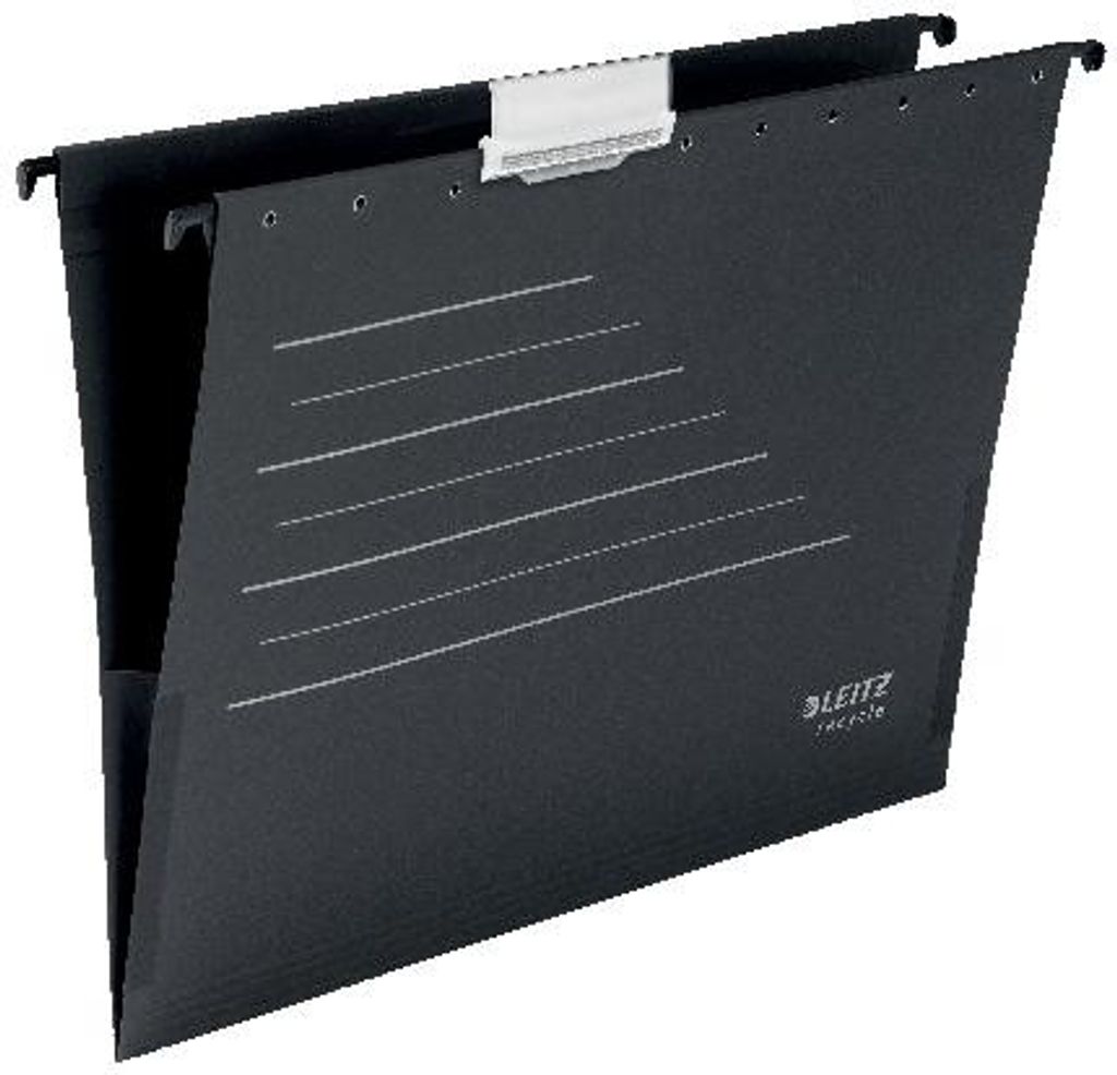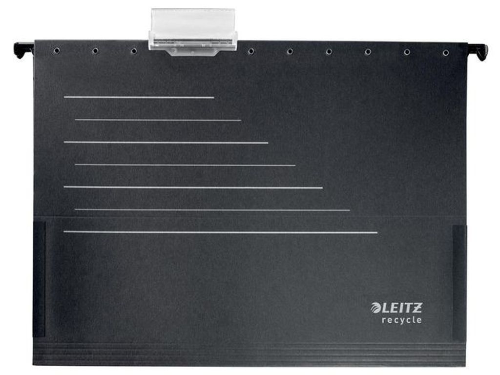 100% återvunnen kartong, klimatkompenserad och 100% återvinningsbar. Blue Angel miljöcertifierad. Iögonfallande hängmapp av högsta kvalitet med V-botten och sidskydd som passar A4. Maximera lagringsutrymmet med vertikal arkivering för att hålla papper snyggt och tillgängligt. De starka hållbara skenorna tål tung användning och den medföljande etiketthållaren hjälper till att organisera och identifiera innehåll. Denna robusta hängmapp med sidskydd kompletterar perfekt andra produkter från Leitz Recycle-sortimentet och är gjord för att hålla. Med det nya återvinningsprogrammet från Leitz kan du både förbättra din kontorsmiljö - och miljön på vår planet.