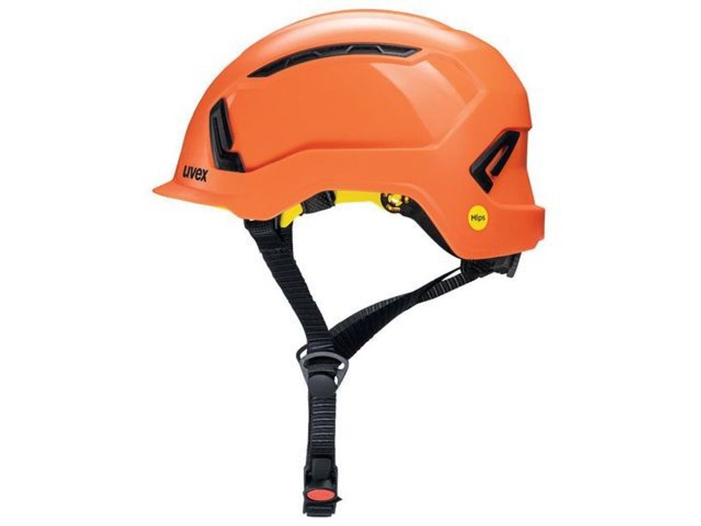 En skyddshjälm med idealisk kombination av pålitligt skydd och dynamisk design. Sido Euroslot-adaptrar (30 mm) för att fästa hörselkåpor. Fyra fästklämmor för montering av pannlampa eller skyddsglasögon. EN 12492 gaffelhakband (art.nr 9790351) ingår i standardleveransen. Utbytbara hygiensatser. Frontal stötdämpning, dorsal stötdämpning, lateral stötdämpning Penetrationsmotstånd mot vassa och spetsiga föremål Hakbandsöppning från 500 N Maximal förlängning av bärelement 25 mm Vertikal stötdämpning Flambeständig, beständig mot kalla temperaturer ned till -30 °C Lämplig för: Industri Byggbranschen Energiindustrin Elektrisk industri Landskapsarkitektur Skogsbruk Vad är MIPS? Mips är världsledande specialister på hjälmbaserad säkerhet och därmed skydd av hjärnan. Dess unika och patenterade säkerhetssystem utgår från ett lågfriktionslager som är placerat inuti hjälmen mellan huvudet och hjälmens yttre skal, för att vid vissa sneda islag låta hjälmen röra sig 10-15 mm i förhållande till huvudet i alla riktningar. Syftet är att minska den farliga rotationsrörelse som hjärnan kan utsättas för om du ramlar eller får ett slag mot huvudet. Mips-systemet är utvecklat för att minska rotationsenergin, vilket i sin tur kan reducera risken för hjärnskakning och andra skador på hjärnan. - Storlek: 51-63 cm - Mångsidig och justerbar fjädringssele med variabelt hjulspärrsystem - EPS innerskal säkerställer utmärkt passform och komfort - Luftventiler för maximal ventilation - EN 12492 Bergsklättrarhjälm standard - EN 397 standard för industriell skyddshjälm Låga temperaturer (-30°C) Hög sidostyvhet (LD — lateral deformation) Smält metall (MM)
