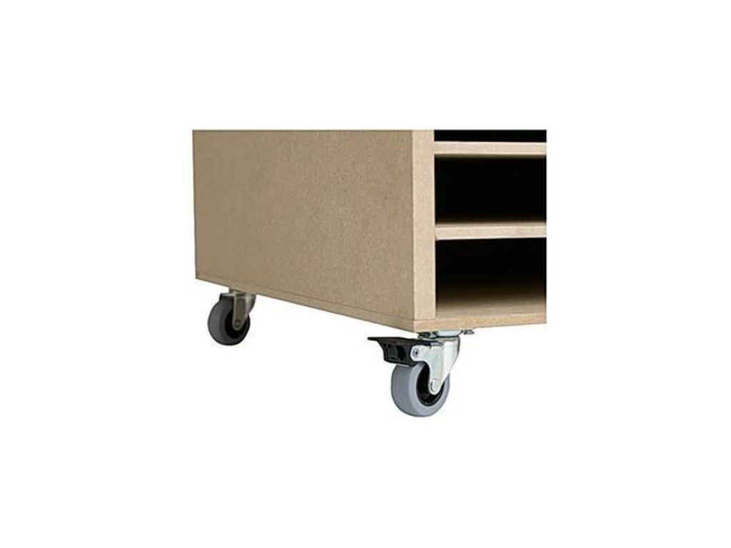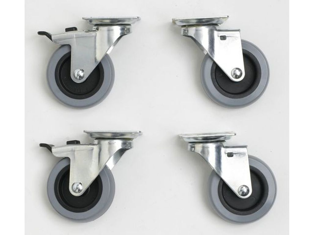 Beskrivning av Hjulset till Förvaringshylla Set med 4 st gummihjul varav 2 st med broms. Kraftig konstruktion som klarar 40 kg/hjul.