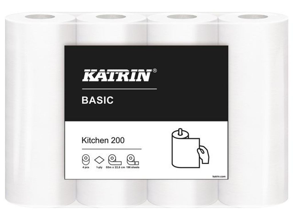 Hushållspapper som fyller basbehoven för torkning Katrin Basic Kitchen är en produkt som uppfyller baskraven av ett hushållspapper. - 1-lagers, naturvit - Perforerade - Godkända för kontakt med livsmedel - 196 ark per rulle - Uppfyller: ISO 9001, ISO 14001 - Längd per rulle: 54,8m - Ark: 280 x 226mm - Diameter: 106mm - Material: 85% återvunna fiber - Svanen: licensnummer 30050006
